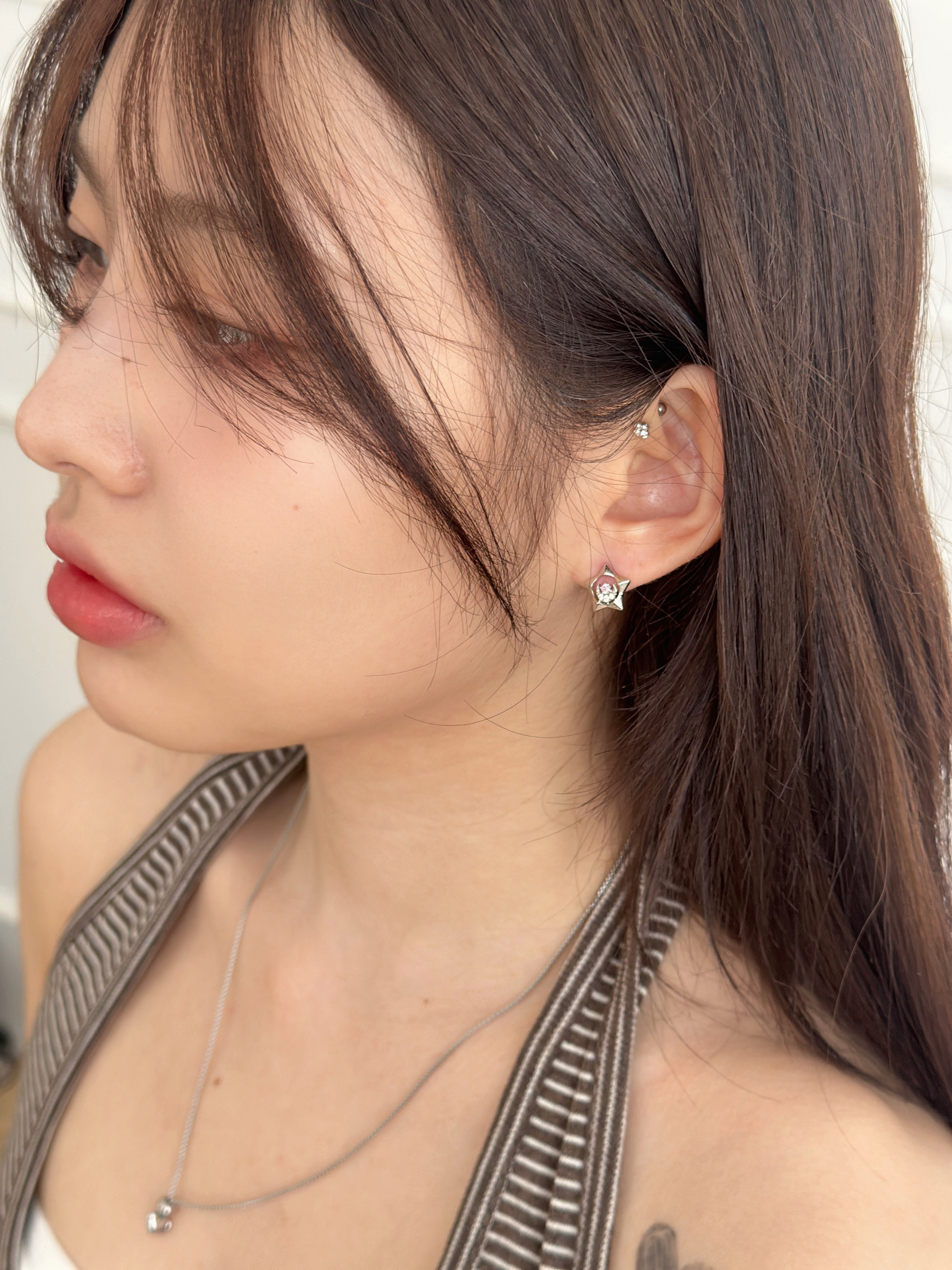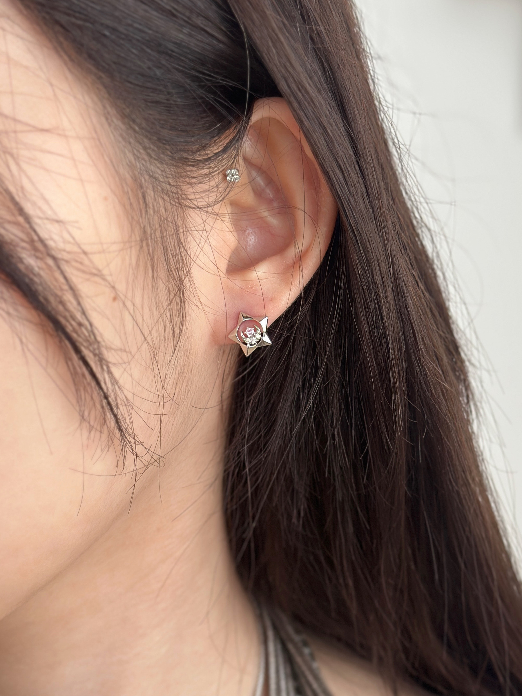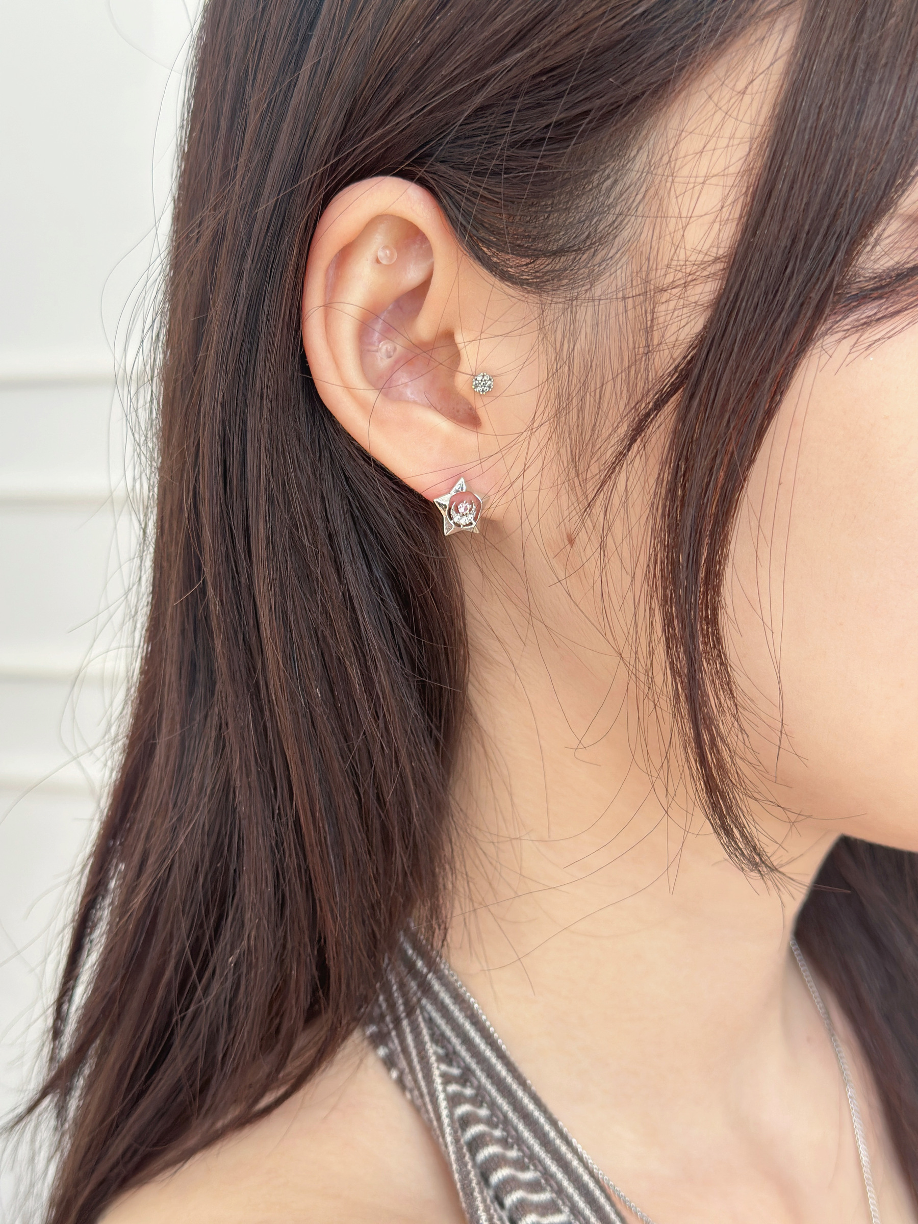 星月粉色微光-貼耳款 𝐌𝐨𝐨𝐧𝐥𝐢𝐭₊⁺🇰🇷 星中星閃耀星鑽銀針耳環 日常百搭 銀針抗過敏 韓國空運✈️ 設計師製品