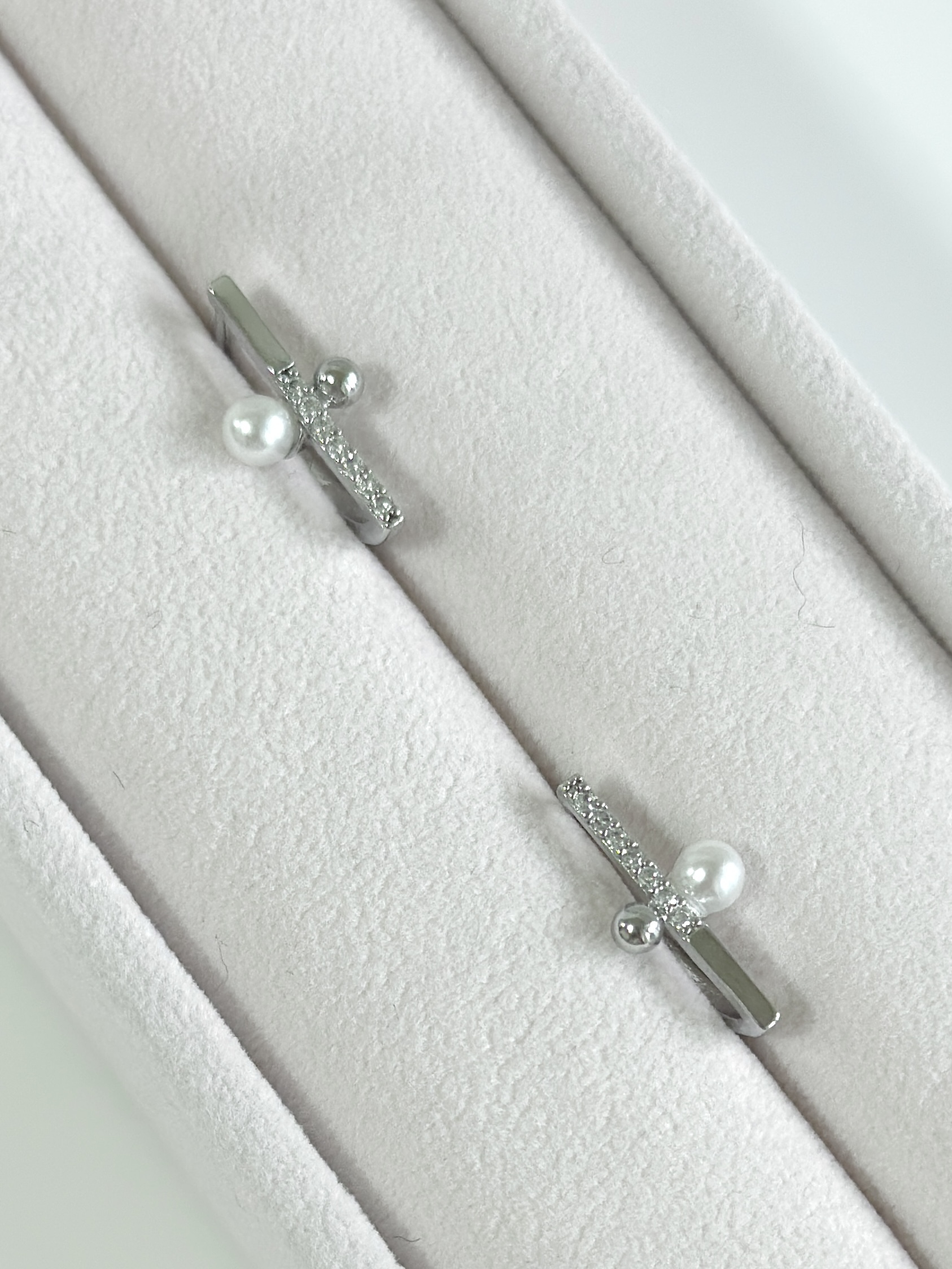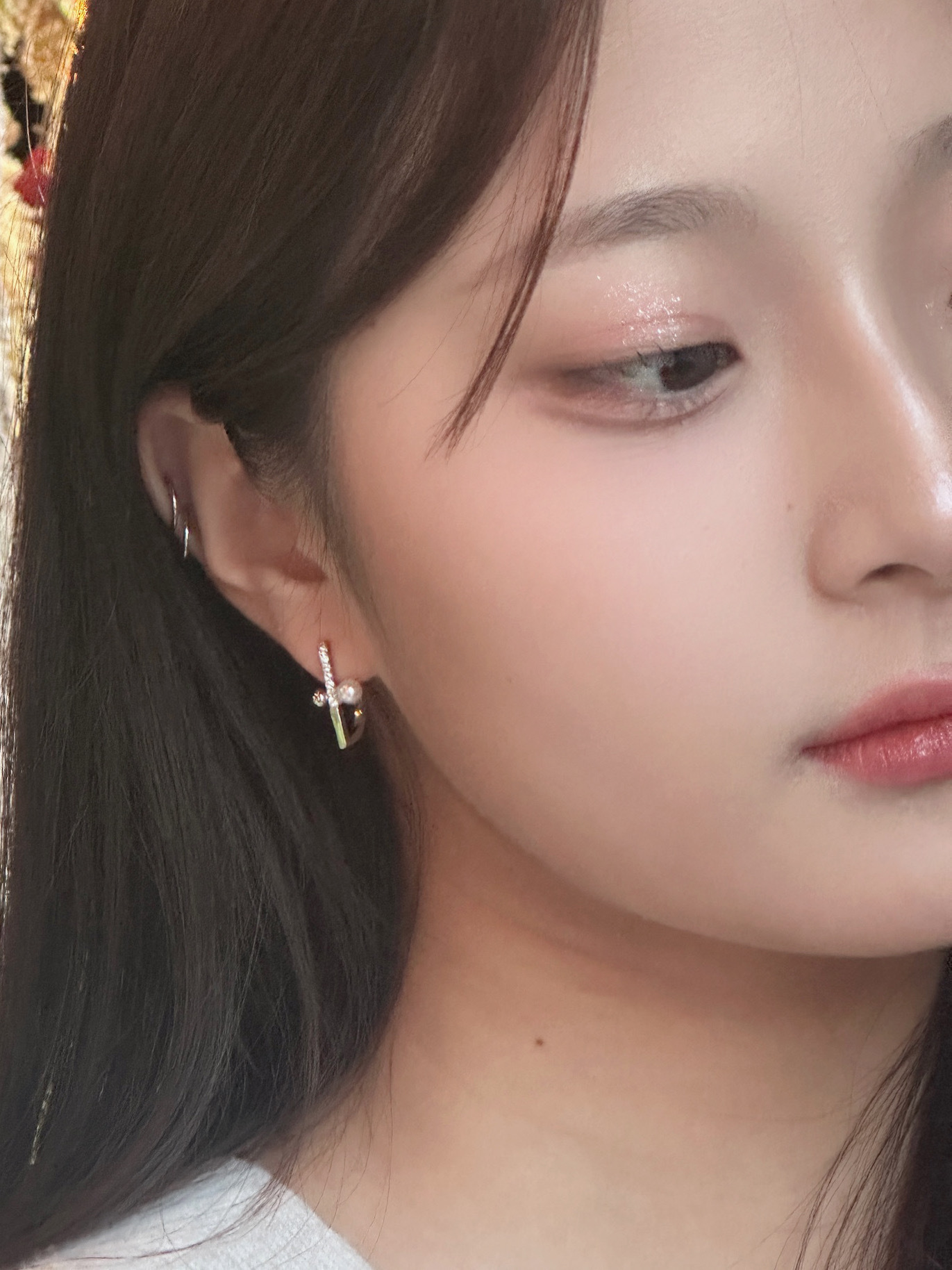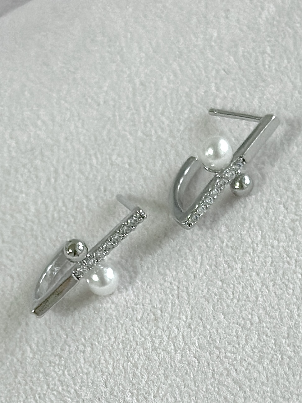 小編碎碎念:「這款小編自留+大愛!看起來很簡約的款式,正面看像長長的1字,側面看卻是很特別的小勾形狀~在微微擺頭間散發不同的魅力✨左右水鑽排列錯位,小珍珠點綴在其間,戴上直接後化身氣質小姐姐!」」
