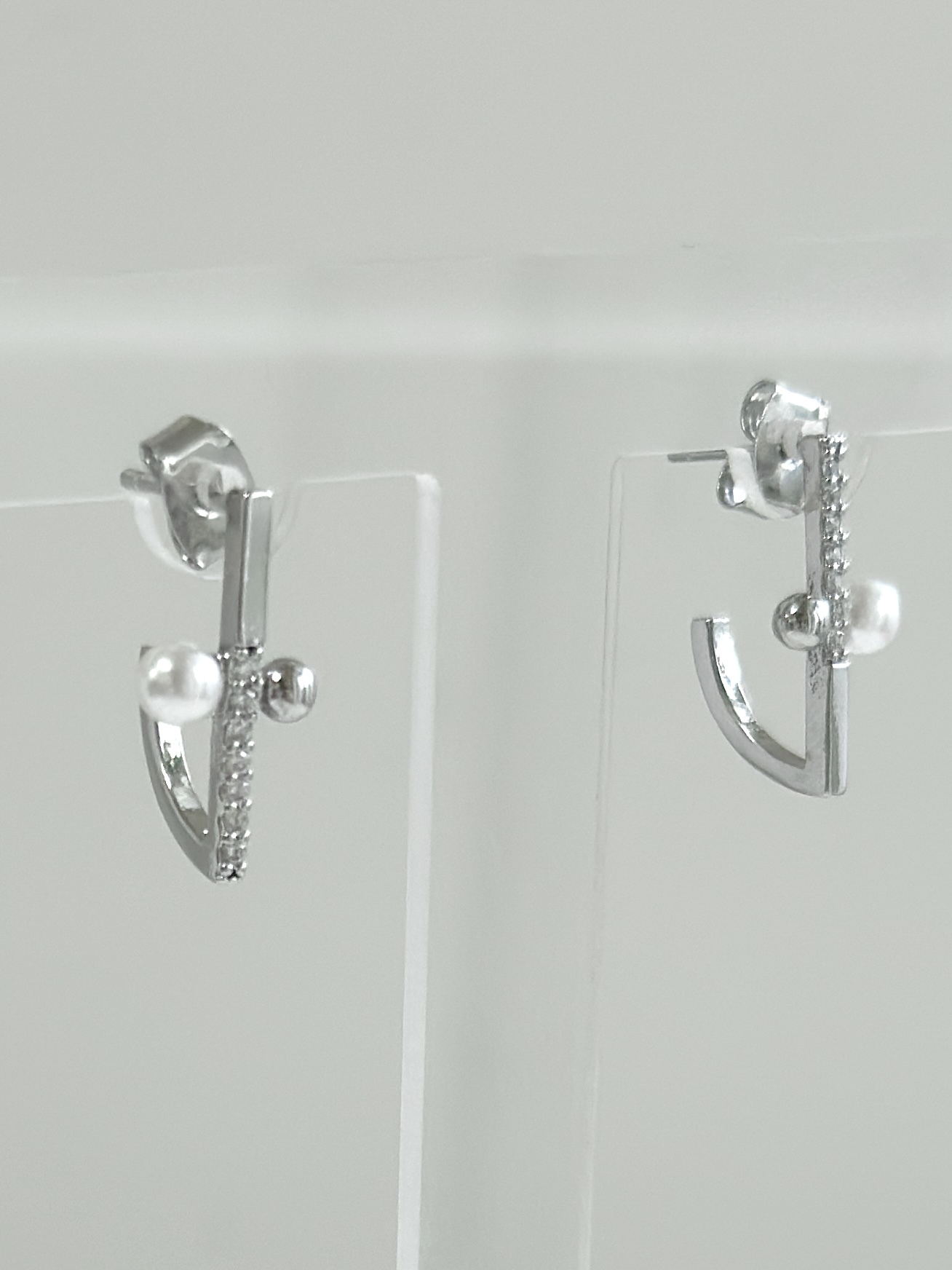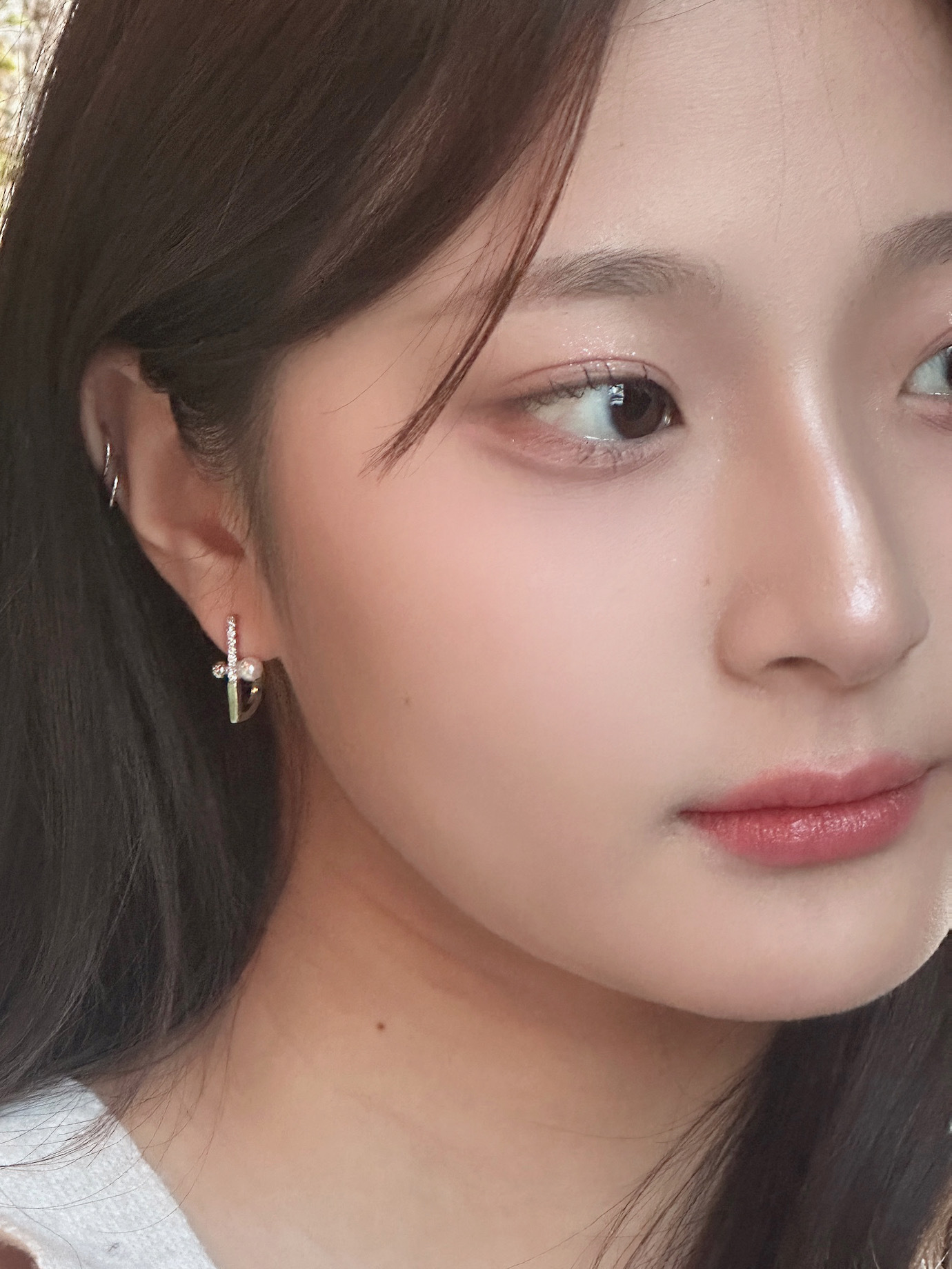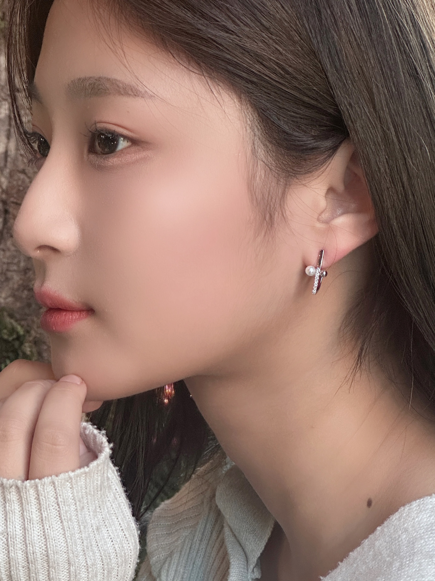 小編碎碎念:「這款小編自留+大愛!看起來很簡約的款式,正面看像長長的1字,側面看卻是很特別的小勾形狀~在微微擺頭間散發不同的魅力✨左右水鑽排列錯位,小珍珠點綴在其間,戴上直接後化身氣質小姐姐!」」