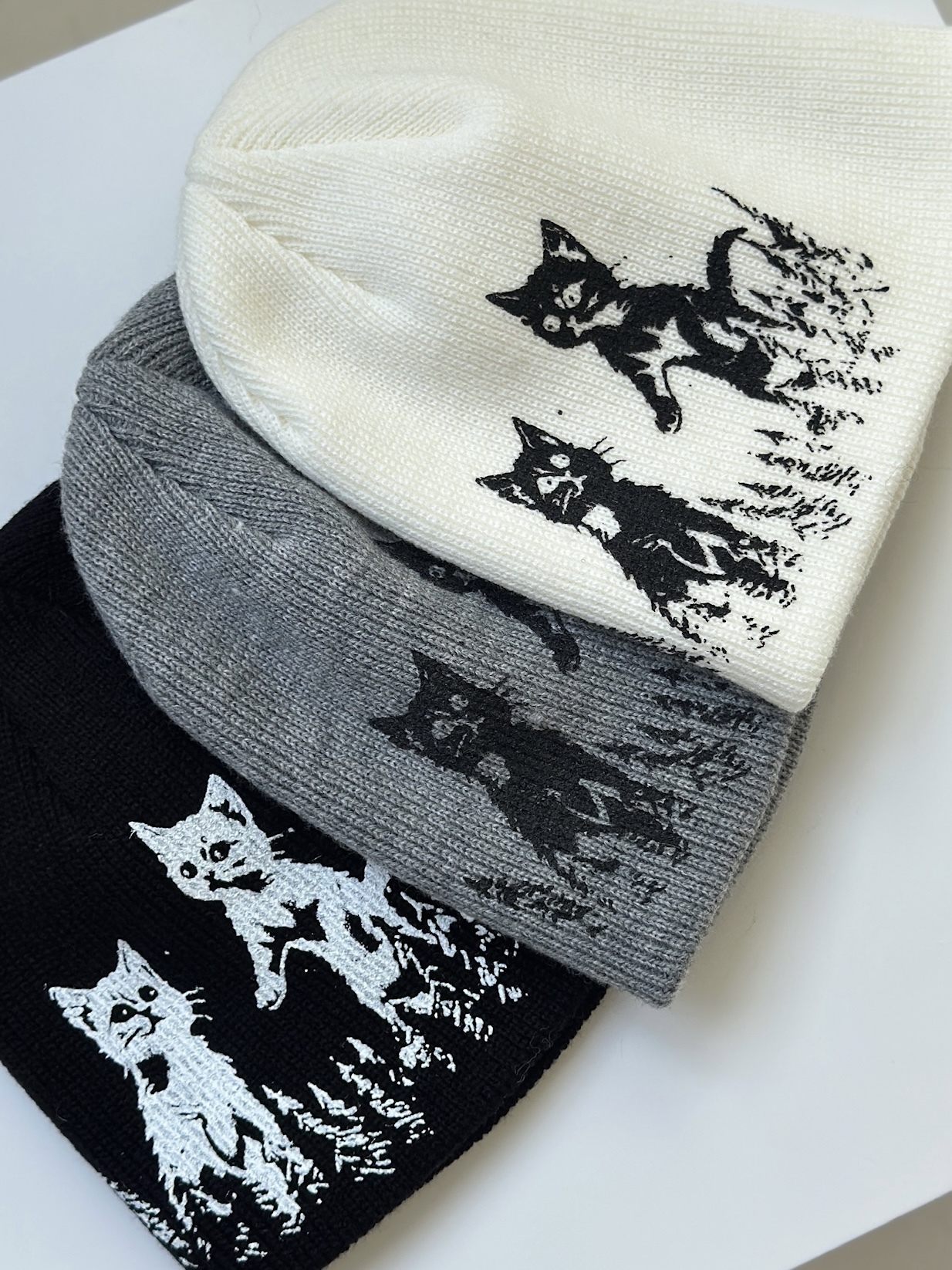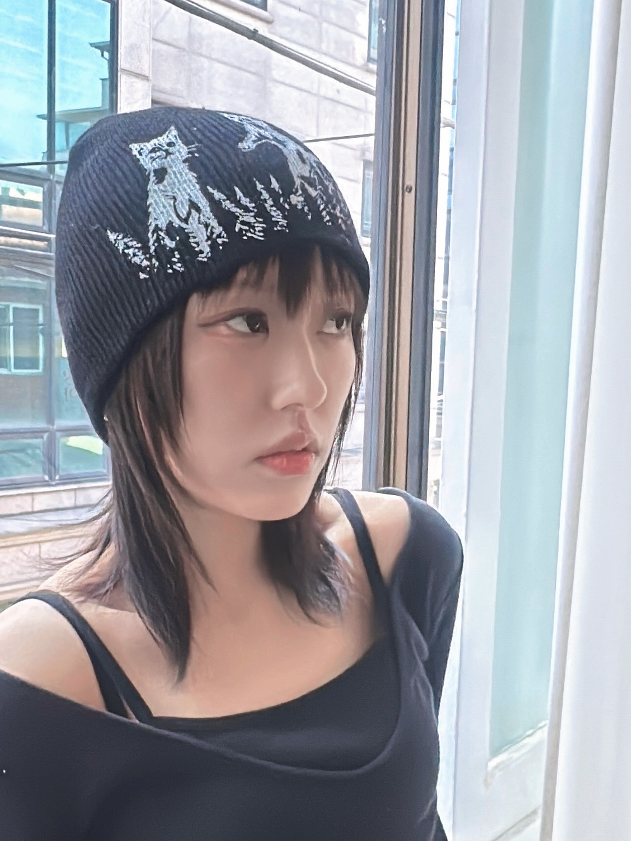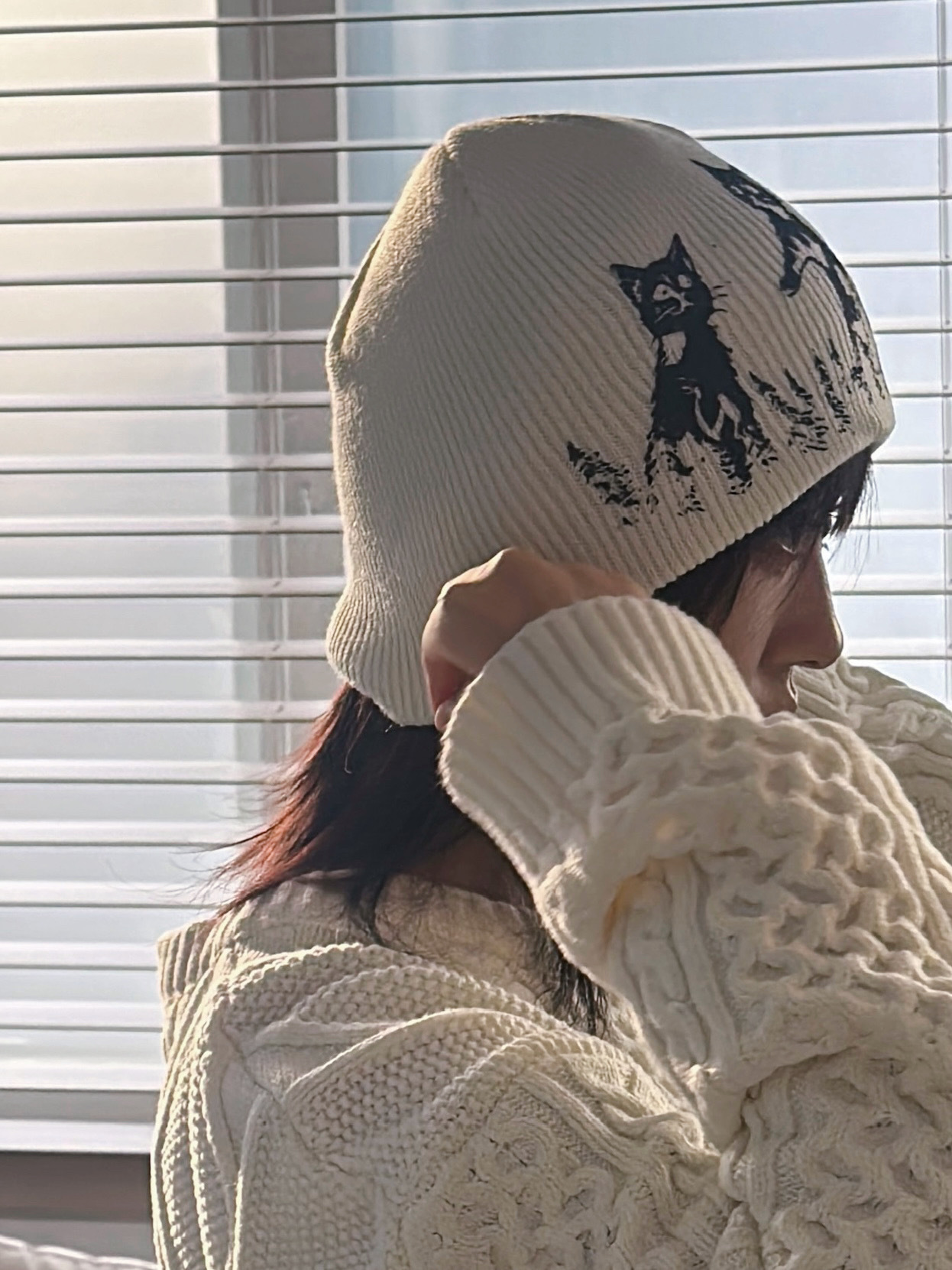 潮喵來襲!毛帽 𝐌𝐨𝐨𝐧𝐥𝐢𝐭₊⁺🇰🇷小眾三色喵毛帽 針織帽 酷甜帥妹必備 不撞帽 設計師製品