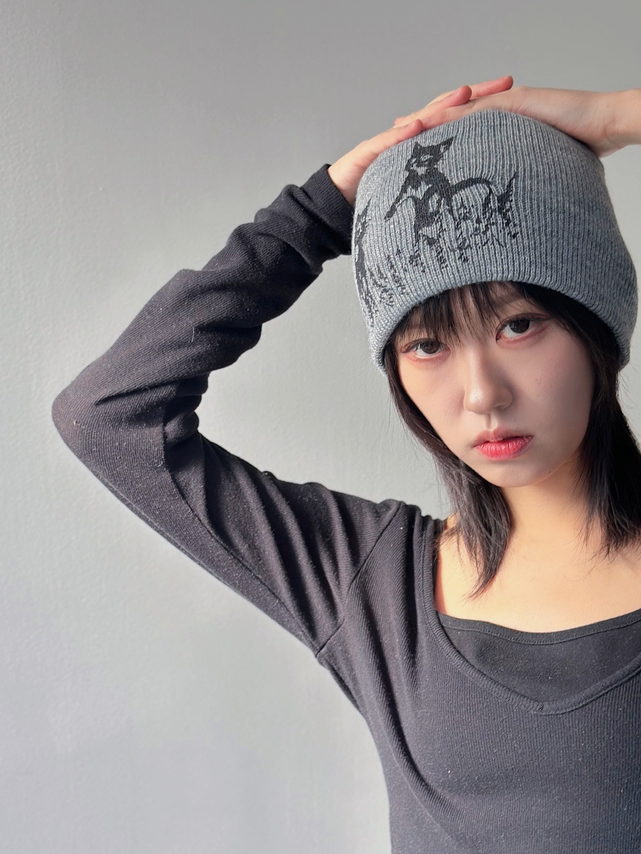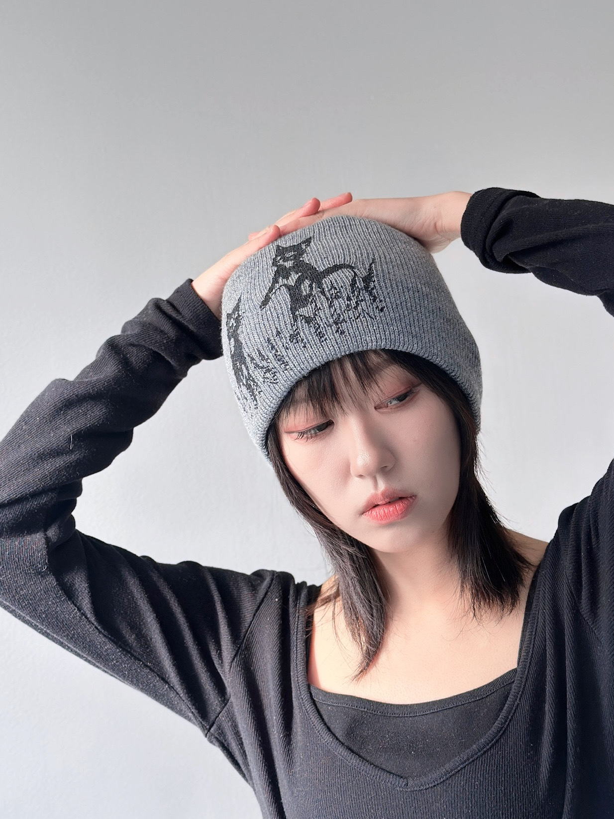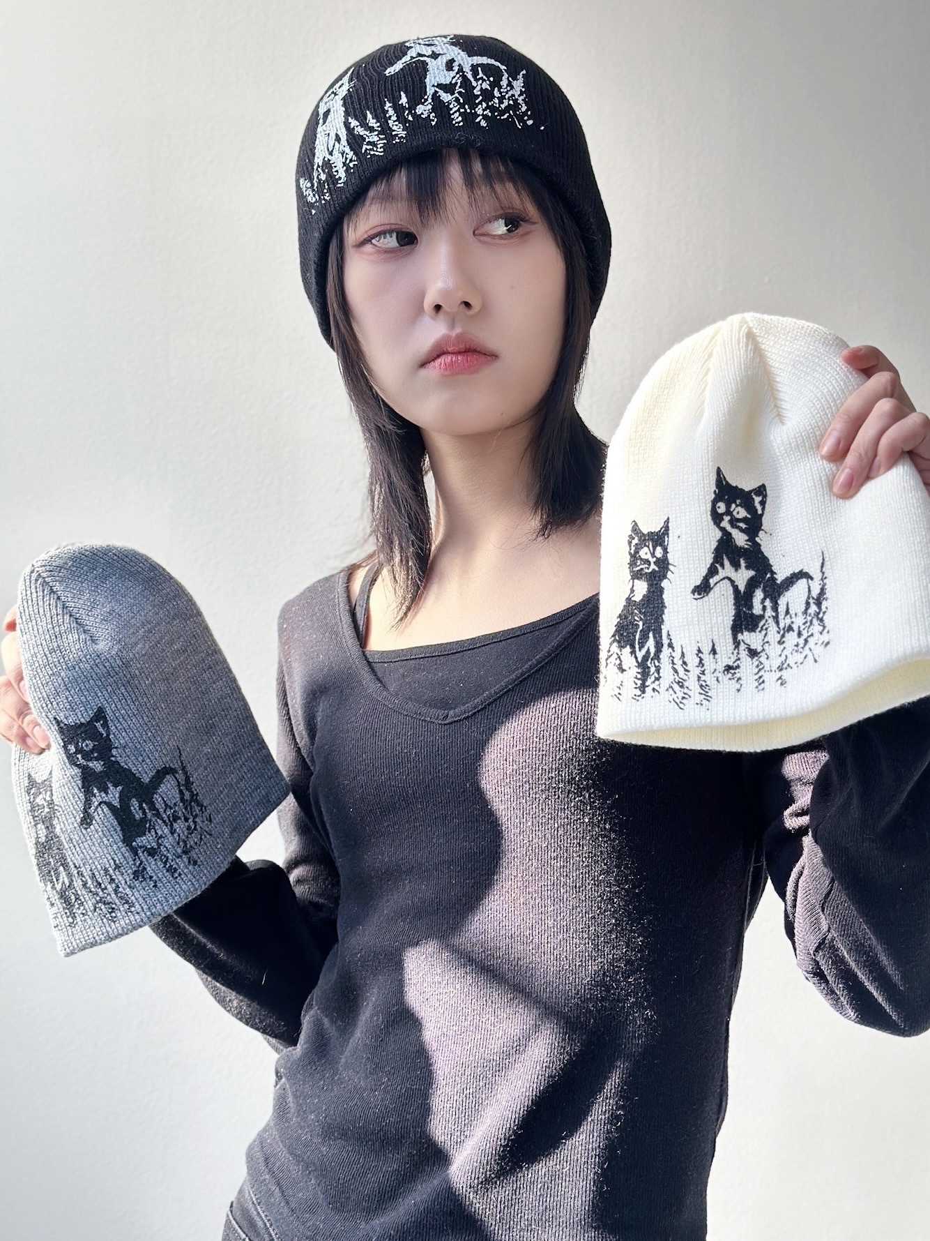 潮喵來襲!毛帽 𝐌𝐨𝐨𝐧𝐥𝐢𝐭₊⁺🇰🇷小眾三色喵毛帽 針織帽 酷甜帥妹必備 不撞帽 設計師製品