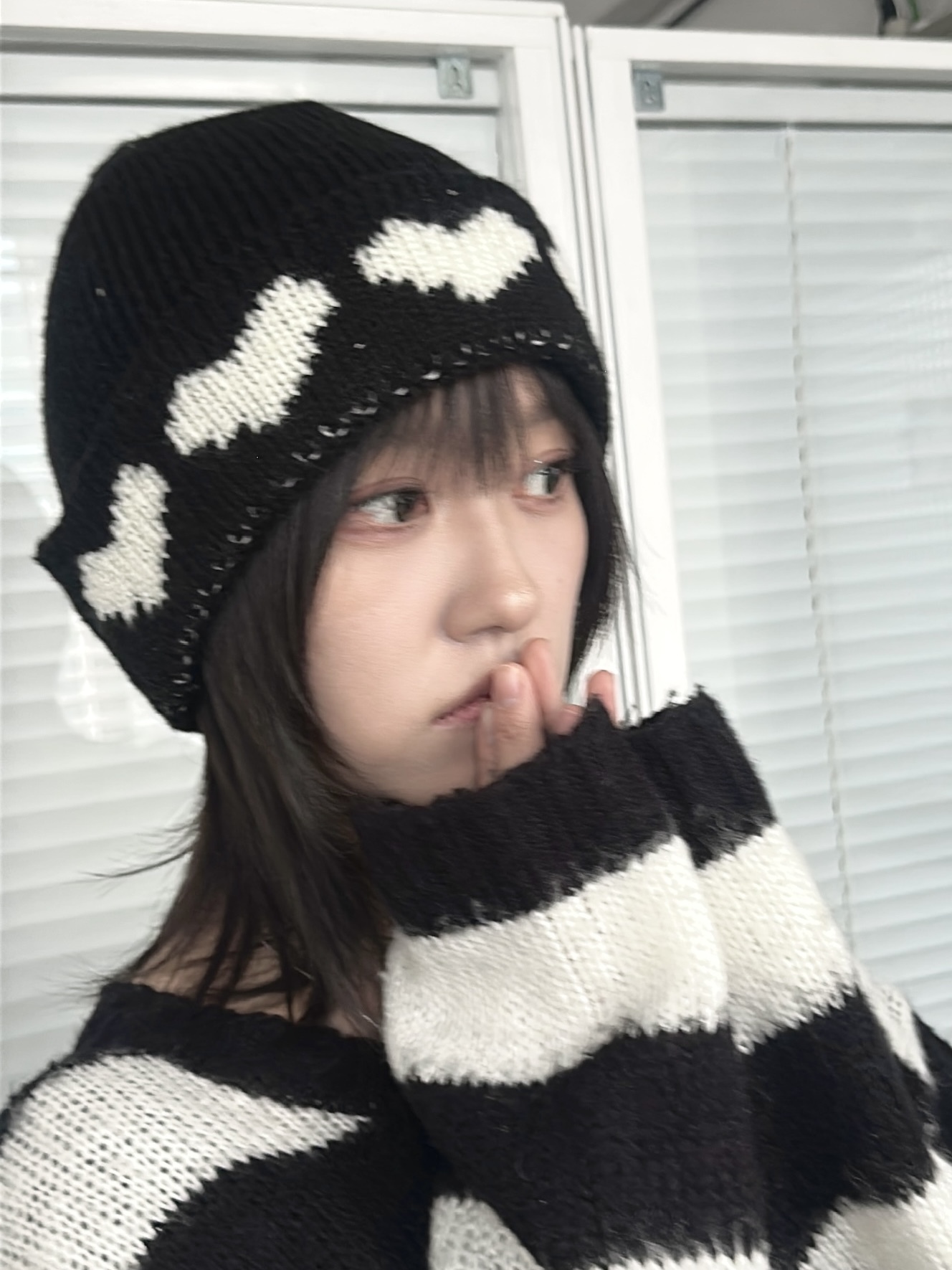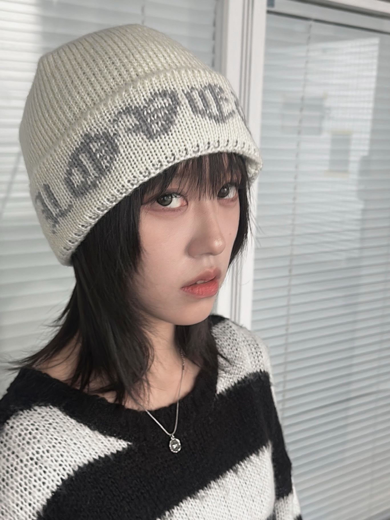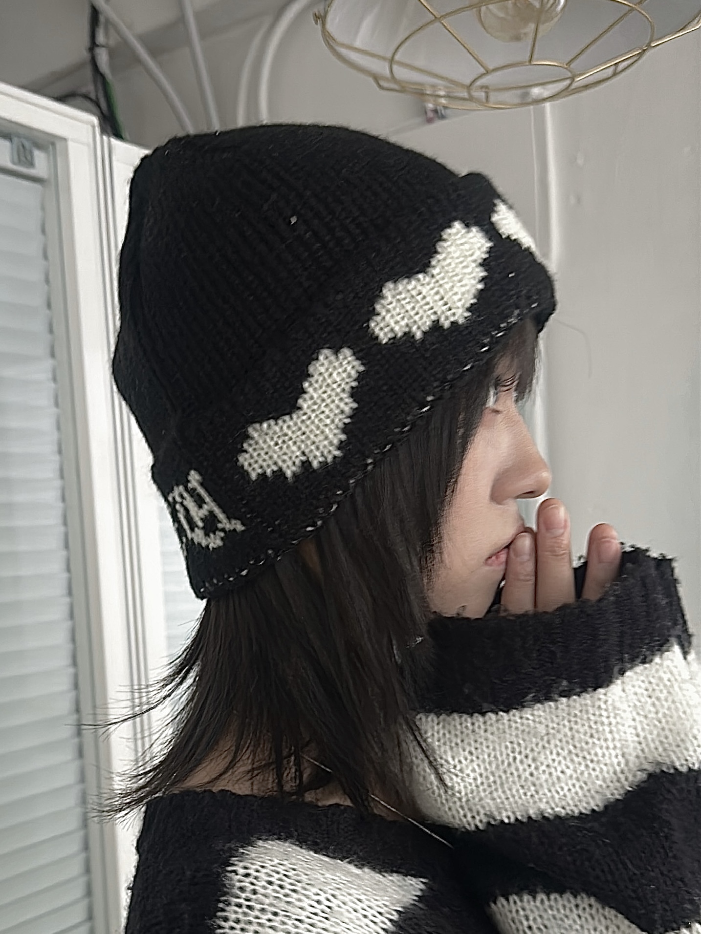翻轉風格!毛帽 𝐌𝐨𝐨𝐧𝐥𝐢𝐭₊⁺🇰🇷 黑白翻轉針織毛帽 針織帽 貼頭感 設計師製品