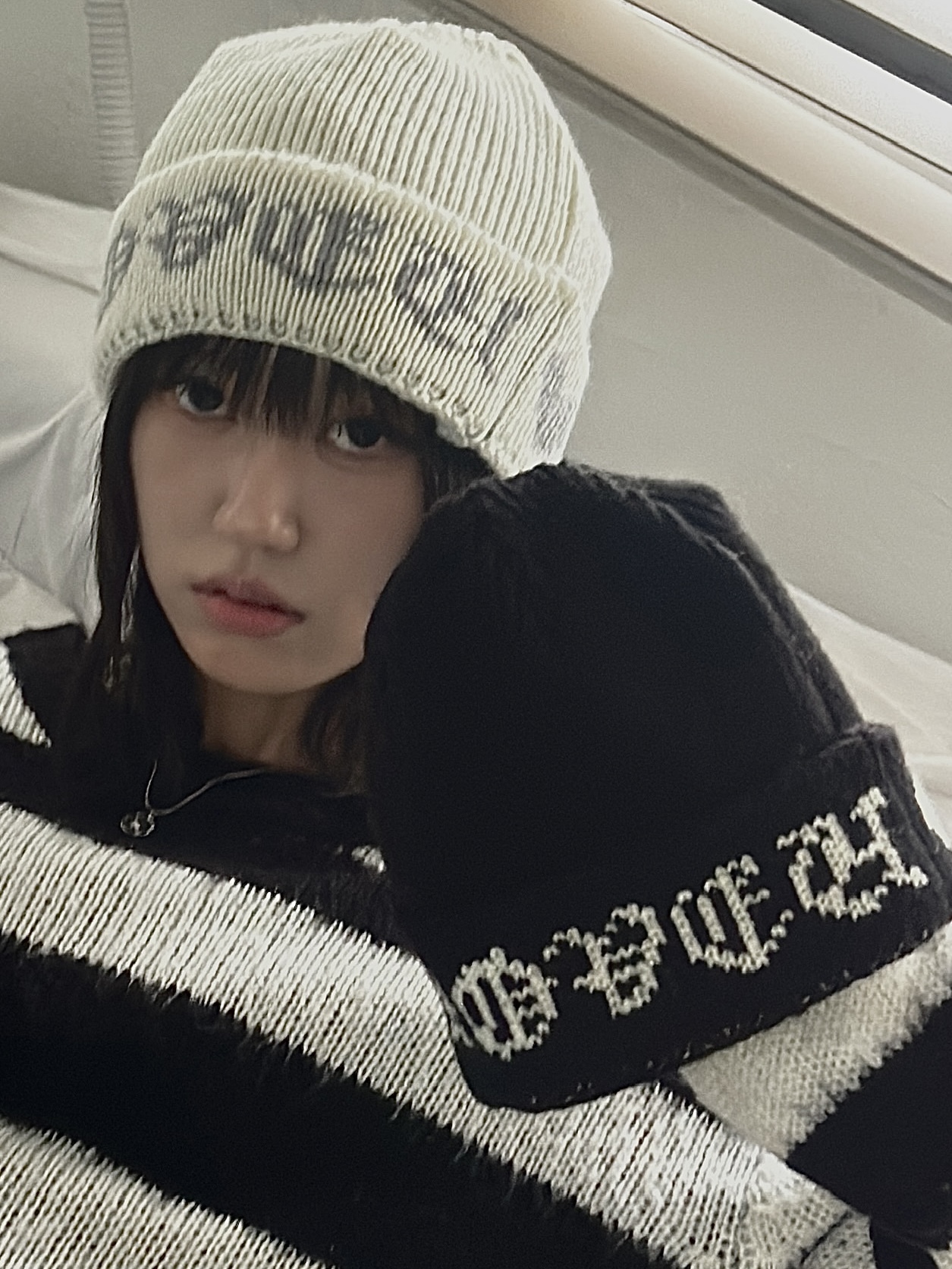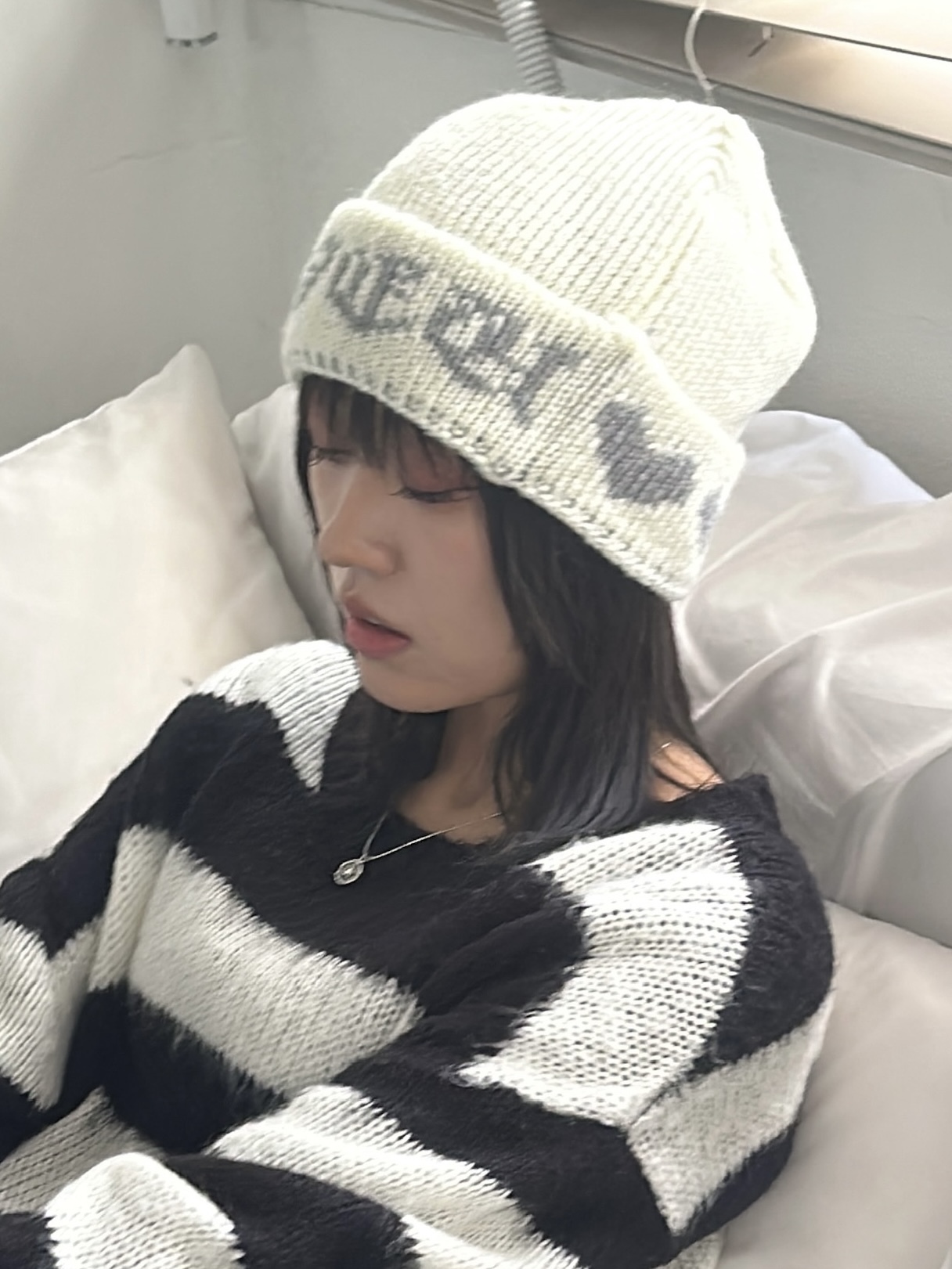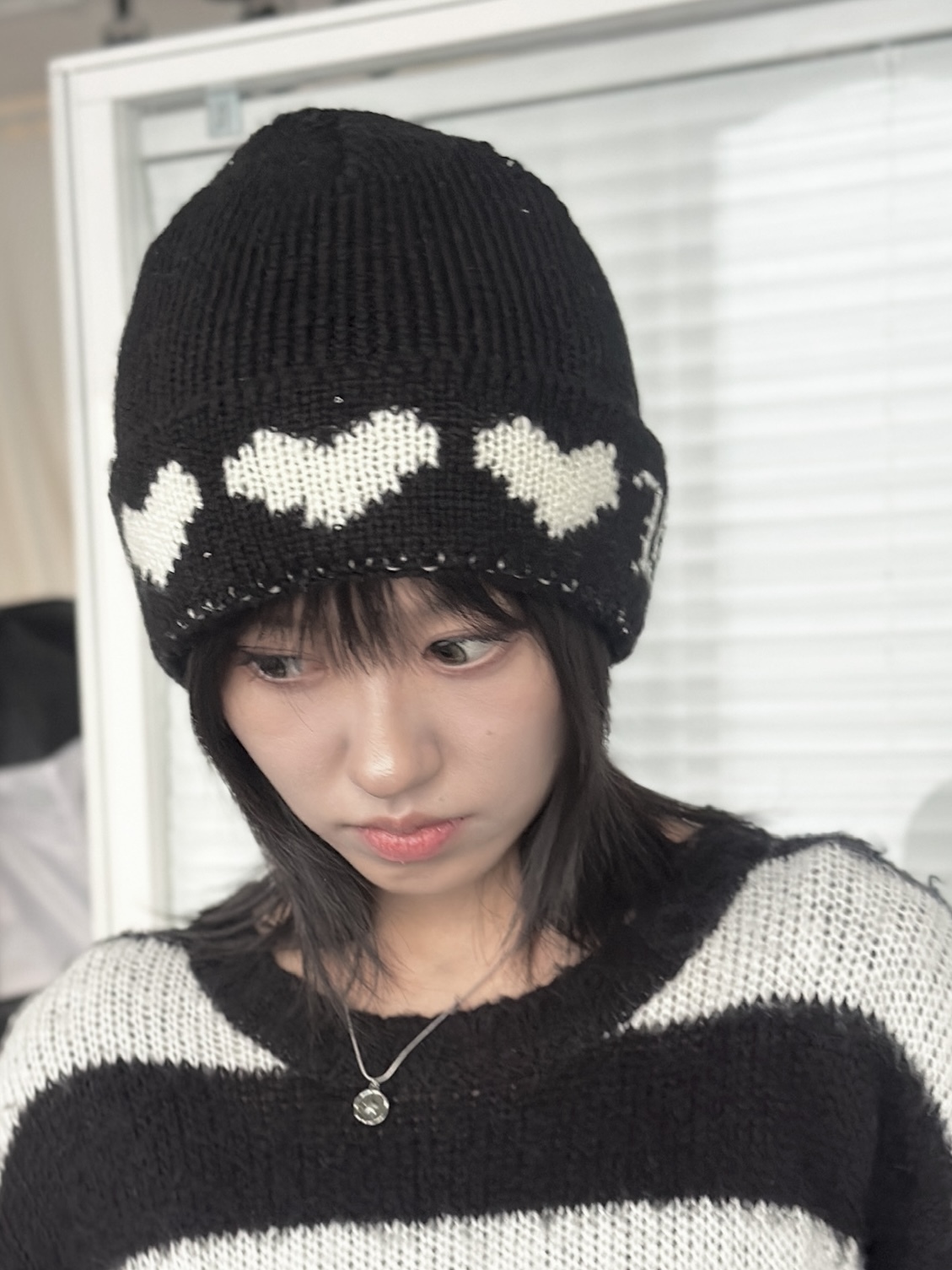 翻轉風格!毛帽 𝐌𝐨𝐨𝐧𝐥𝐢𝐭₊⁺🇰🇷 黑白翻轉針織毛帽 針織帽 貼頭感 設計師製品