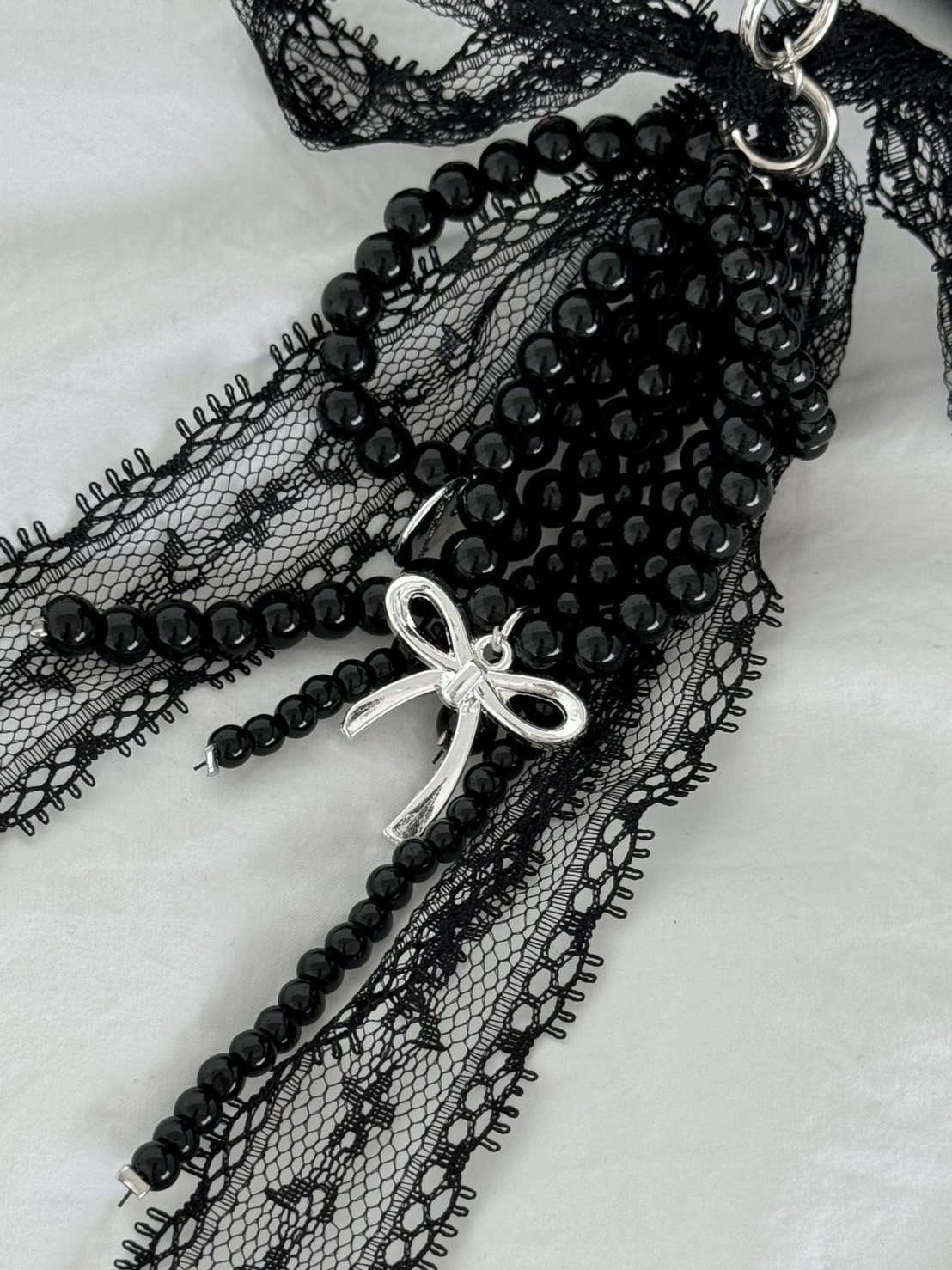 小編碎碎念:「哥德式黑色蕾絲搭配串珠與銀色蝴蝶結,展現出 華麗、個性、復古 的風格。還不易髒喔!