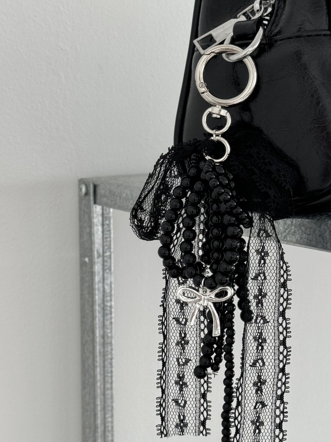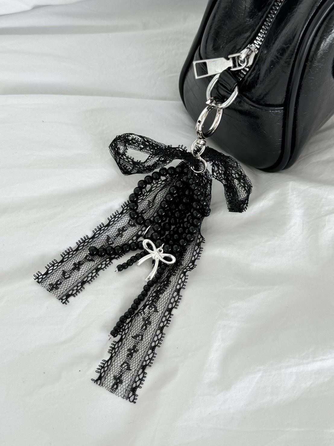 哥德密語!吊飾 𝐌𝐨𝐨𝐧𝐥𝐢𝐭₊⁺🇰🇷 哥德式黑色蝴蝶結蕾絲掉飾 手機掛繩 吊飾 暗黑系 酷甜風 韓國空運